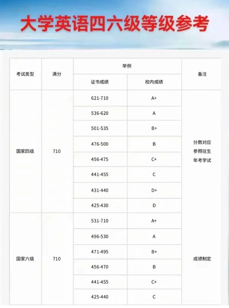 下面是大学英语四六级等级参考表,过了的同学看看,还要刷六级绩成绩吗?